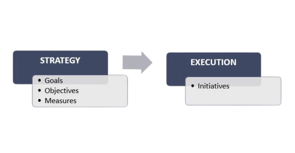 Strategies are often directly broken down into a series of initiatives (see Figure 1). However, these individual initiatives, derived from the overarching strategy, often lack cohesion and can become misaligned.